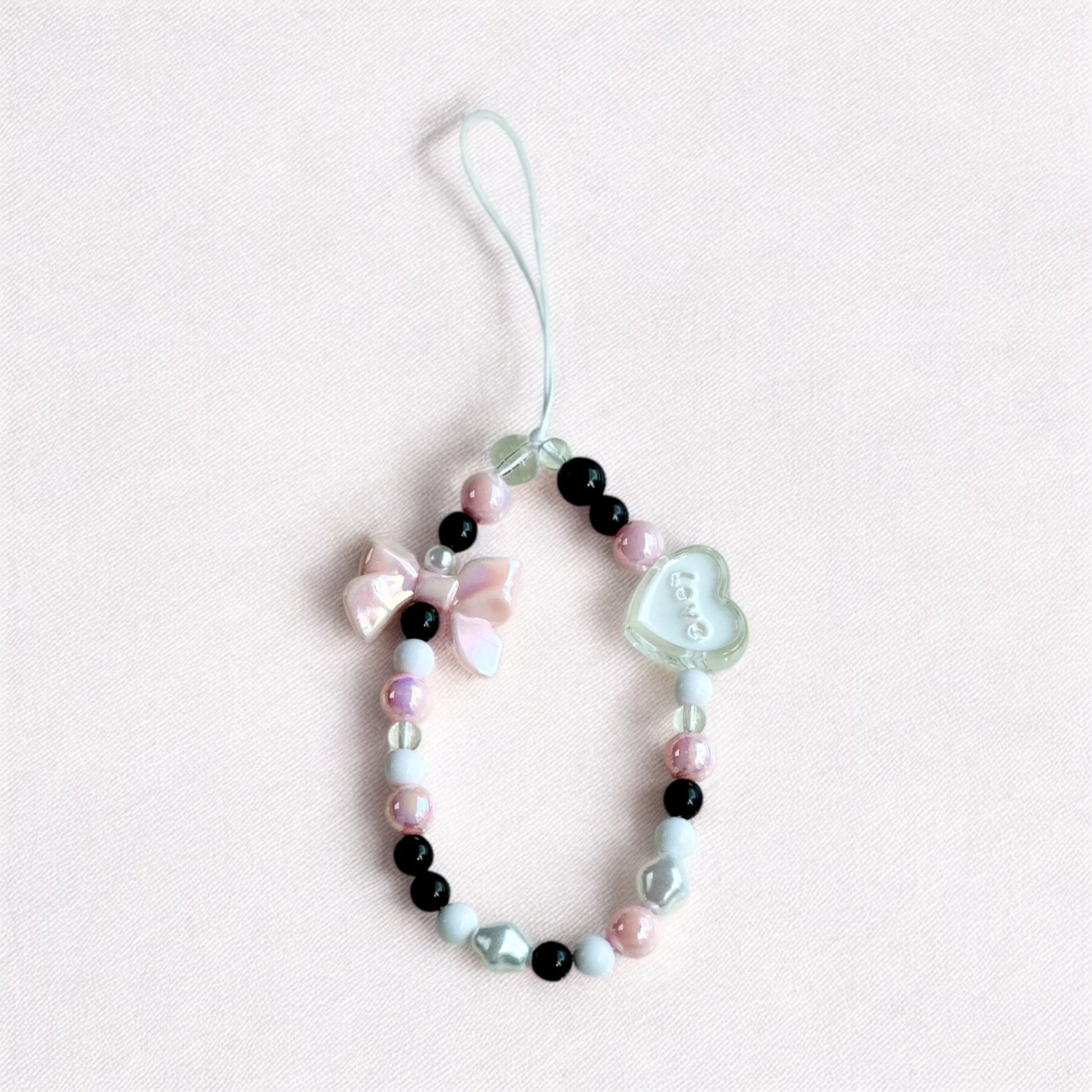 Accessorise your phone with our Mabel Phone Charm. This charming strap features Pink bow and heart charms. Simply attach it to your mobile phone!