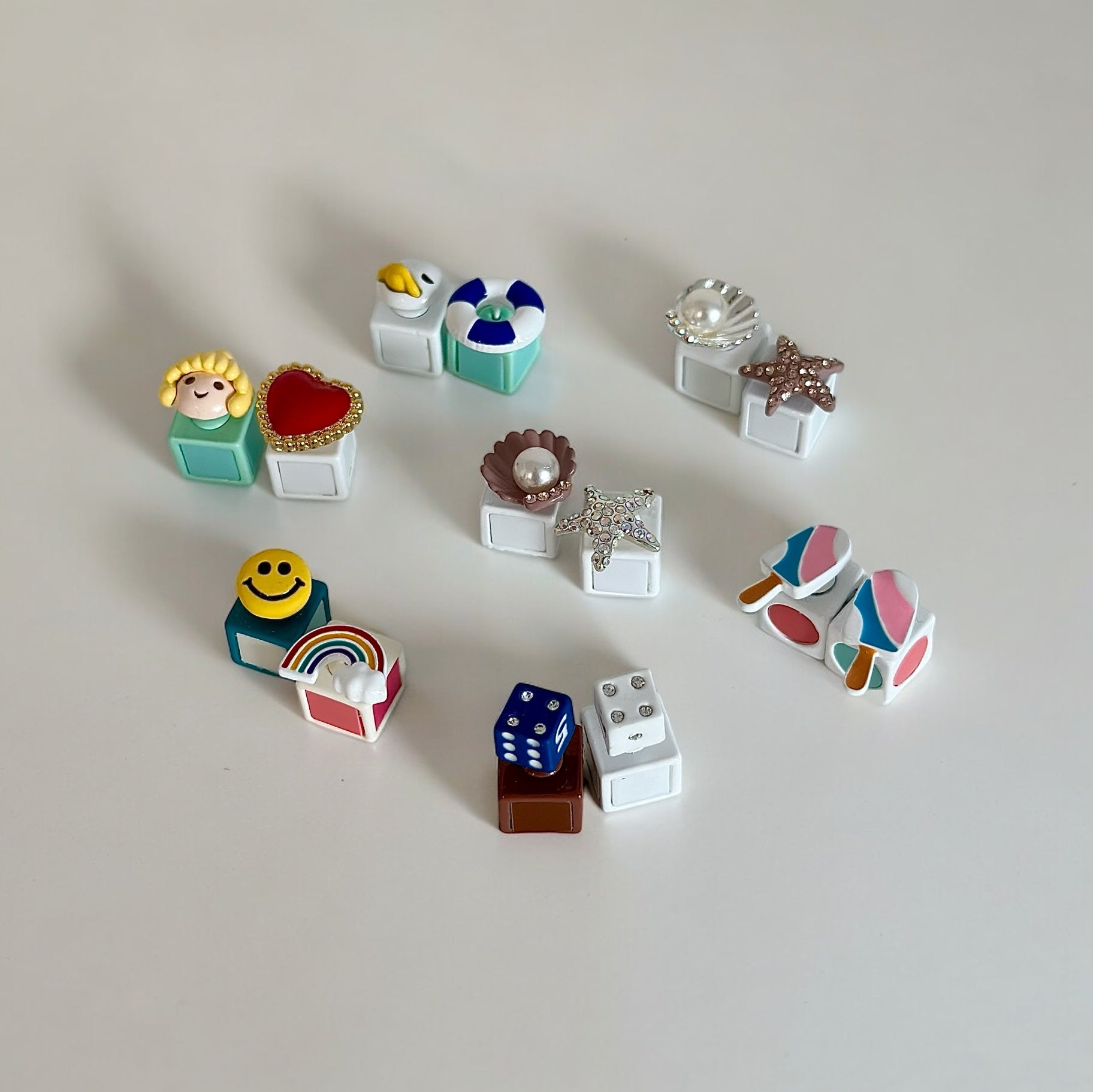 Brighten up your look with these mismatched smiley face and red heart earrings.